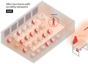 Una sala, un bar y un aula: cómo se propaga el coronavirus por el aire. Artículo en El País.