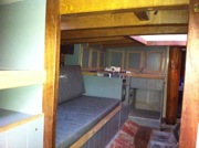 Timmy testing a double berth (no cushions yet)