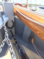 22' of bowsrit in front of the bow, needs stowing on the pontoon